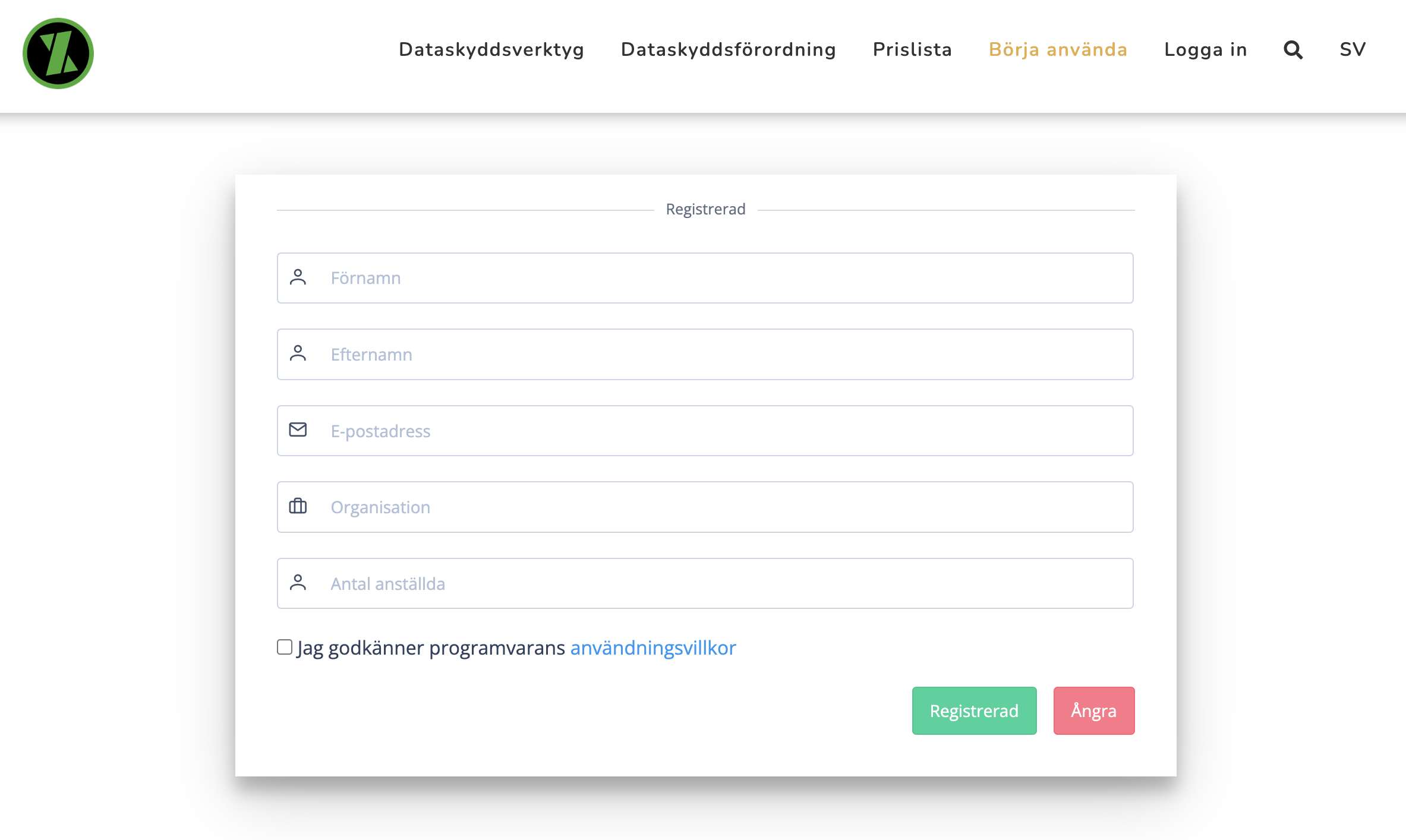 Du kan bekanta dig med dataskyddsverktyget kostnadsfritt i två veckor. Du kommer att använda den fullständiga versionen av tjänsten under provperioden. Om du är nöjd med tjänsten behöver du bara registrera din faktureringsinformation i dataskyddsverktyget och du kan fortsätta använda det utan avbrott. Kontakta oss om du vill skapa en ny orörd profil till din organisation i slutet av provperioden.